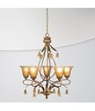Traditional Single Tier Chandelier in Weathered Gold with Amber Fade glass from the Sorrento Collection by Eurofase Lighting. Dimensions: 32.00 H 26.00 W