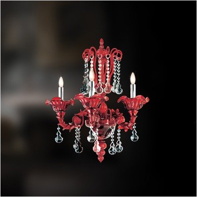 19499-017 Features: -Three light sconce. -Valentina collection. -Red finish. -Crystal shade. -The slight blush of the crimson shade is emphasized by the handcrafted ribbed and layered glass. -Chandelier bulbs are perched in blossom-lip arms. -Valentina coruscates with masterful technique and complexity, making the perfect. Specifications: -Accommodates (3) 60W E12 base B10 bulbs. -Overall dimensions: 30'' H x 16'' W x 25'' D. -120 Volts..../ Valentina Three Light Sconce in Red / Eurofase